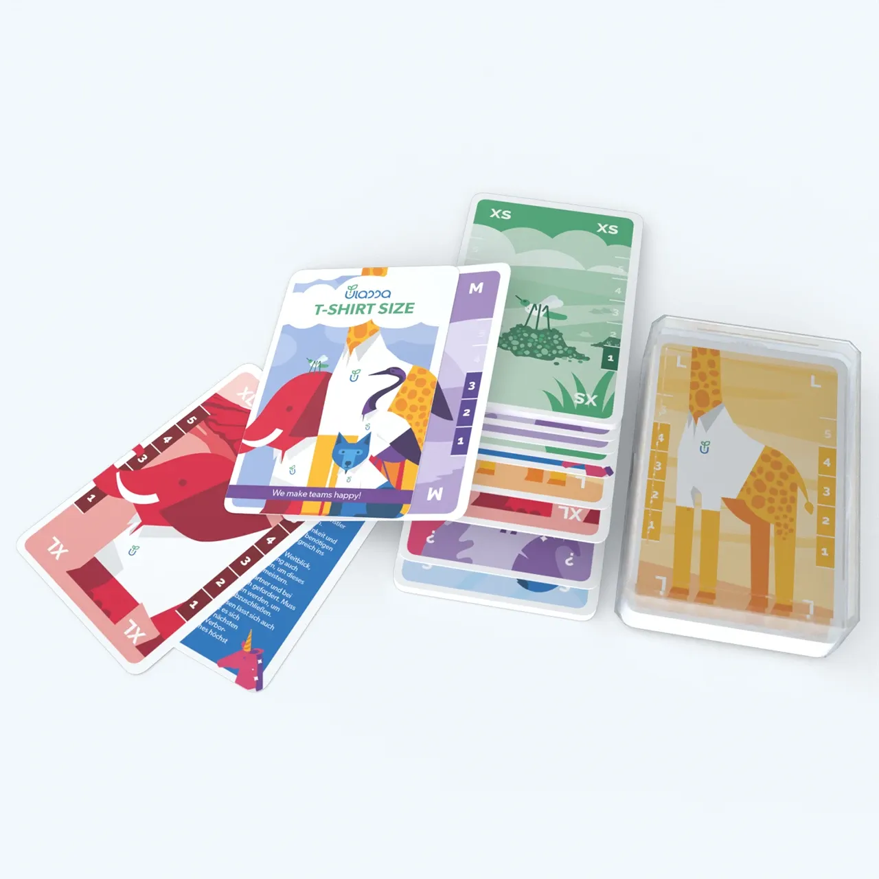 Neben dem Basisdesign entstand Schritt für Schritt eine ganze Produktwelt, darunter Planning Poker Sets (robuste Kartensets mit klarer Typografie und magnetischer Boxverpackung), T-Shirt-Size Karten (farblich codierte Schnellschätzkarten für den täglichen Einsatz) und Awesome Cards (Wertschätzung sichtbar gemacht auf charmant illustrierten Karten in hochwertiger Laserbox).