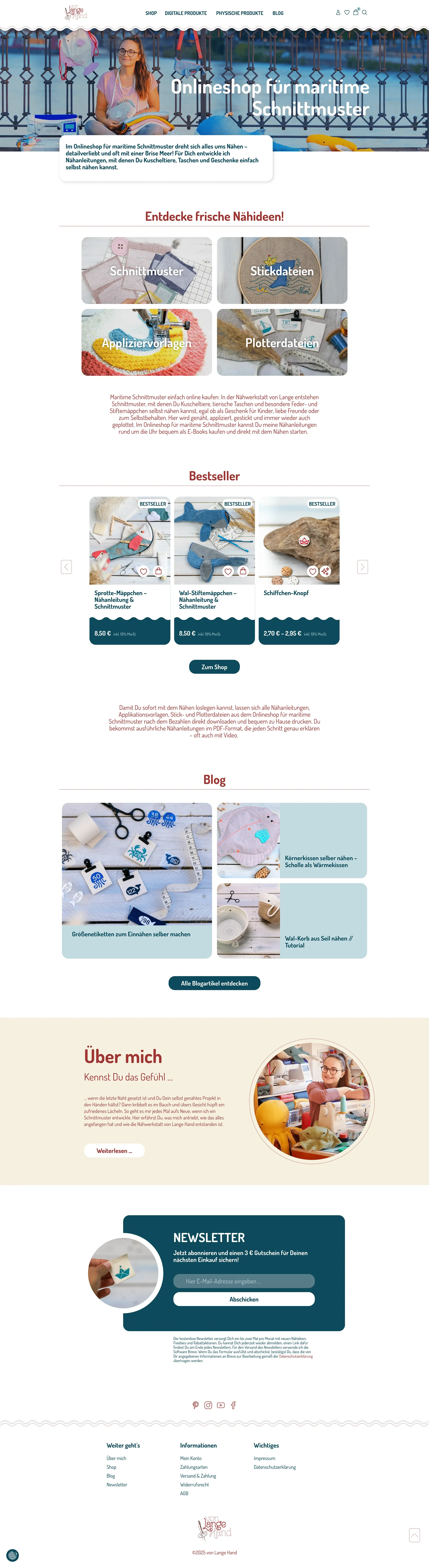 Seit über einem Jahrzehnt steht von Lange Hand für liebevoll gestaltete Schnittmuster und kreative Nähideen. 2013 mit einem Logo gestartet, entwickelte sich die Marke von einem ersten Dawanda-Shop bis hin zu einer eigenen E-Commerce-Plattform kontinuierlich weiter. Doch mit dem Wachstum kamen neue Herausforderungen: Der Webshop war nicht mehr optimal strukturiert und die Verbindung zwischen Blog und Verkaufsplattform ließ Potenzial ungenutzt.